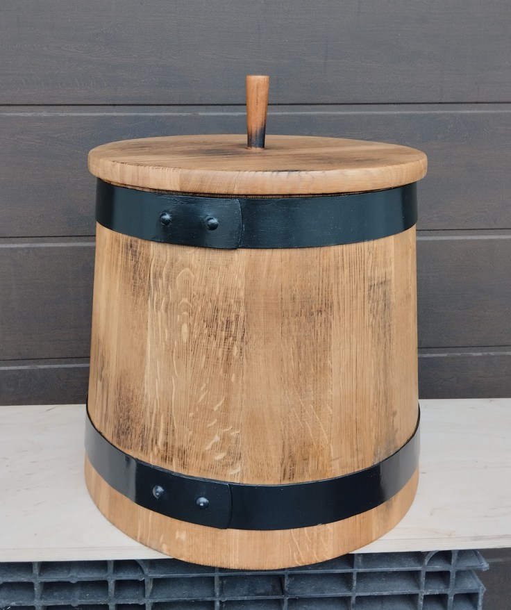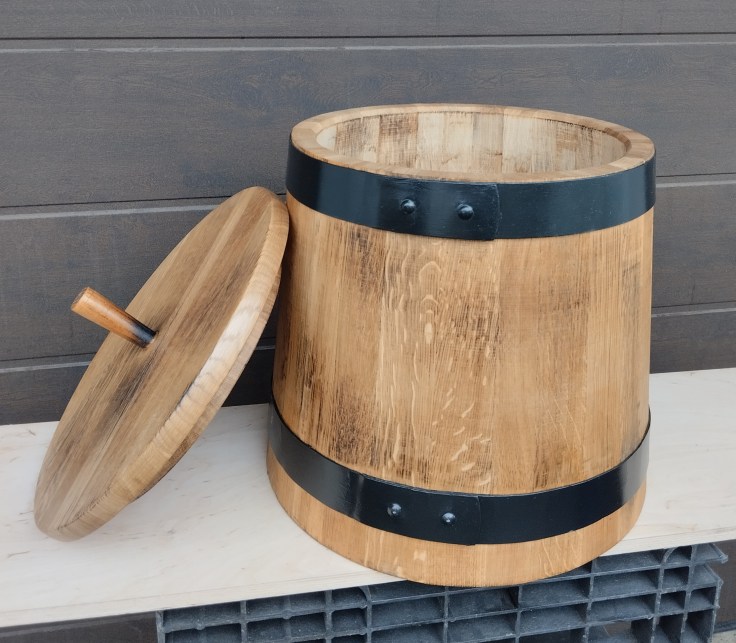 A tölgyfából készült káposztás dézsákat tűzihorganyzott abroncsokkal készítem, a dézsa ára tartalmazza a tartozékokat: a nyomófeneket, a keresztfát és a leszorító orsót.