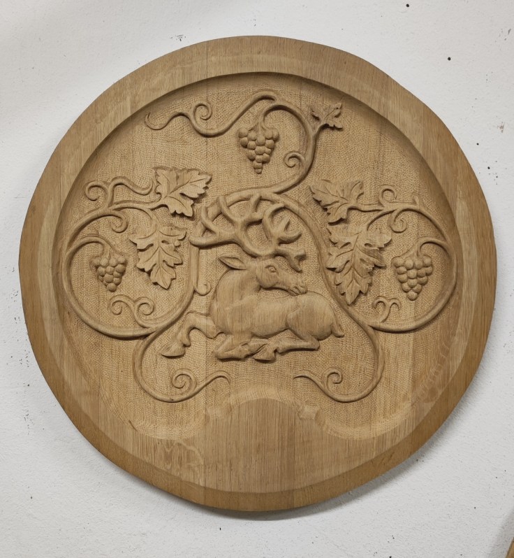 Hand painted, hand carved and laser engraved oak wall decorations and wall clocks