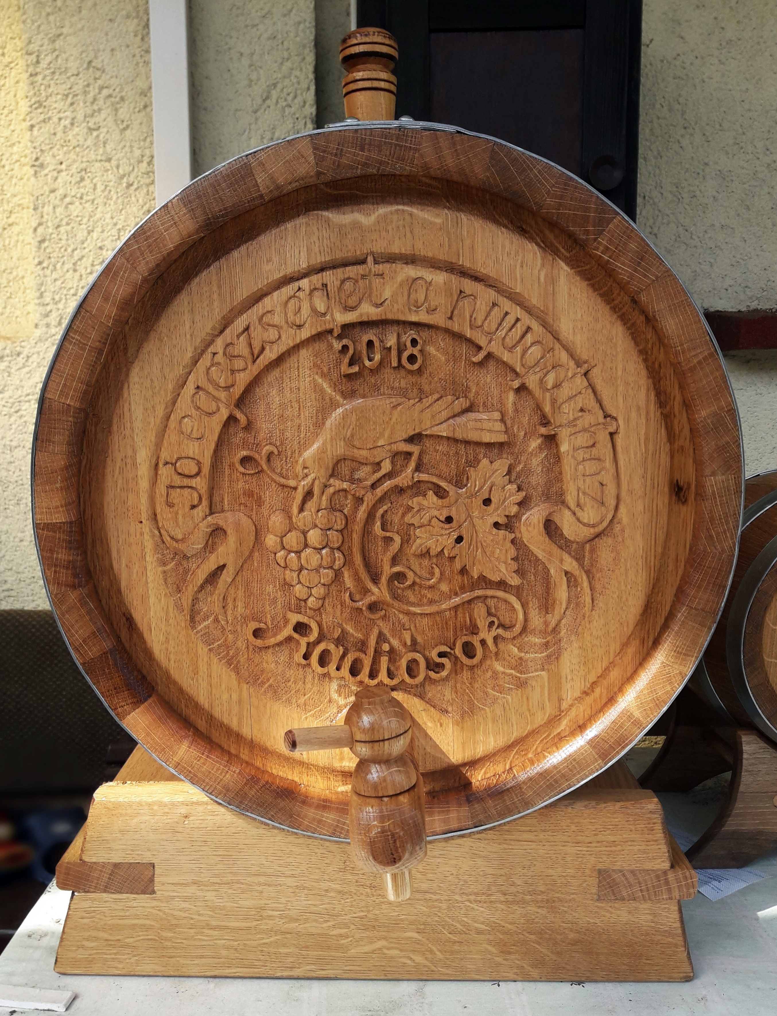 Tölgyfából és eperfából készült hordók tűzihorganyzott abroncsokkal, igény szerint állvánnyal, csappal. A hordóim hagyományos technológiával, tüzelve, paraffinozás nélkül, igény szerint lakkozva vagy lakk nélkül készülnek. Igény szerint pohártartós állvánnyal, egyedi díszítéssel: sütéssel, lézergravírozással, kézi festéssel vagy kézi faragással.