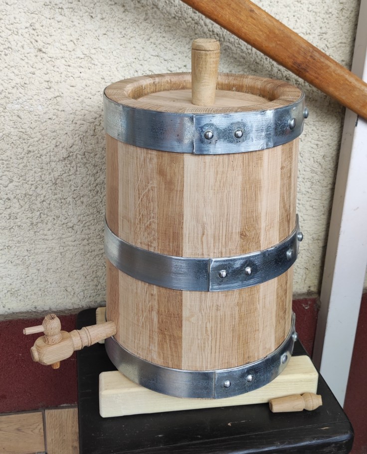 Tölgyfából és eperfából készült hordók tűzihorganyzott abroncsokkal, igény szerint állvánnyal, csappal. A hordóim hagyományos technológiával, tüzelve, paraffinozás nélkül, igény szerint lakkozva vagy lakk nélkül készülnek.