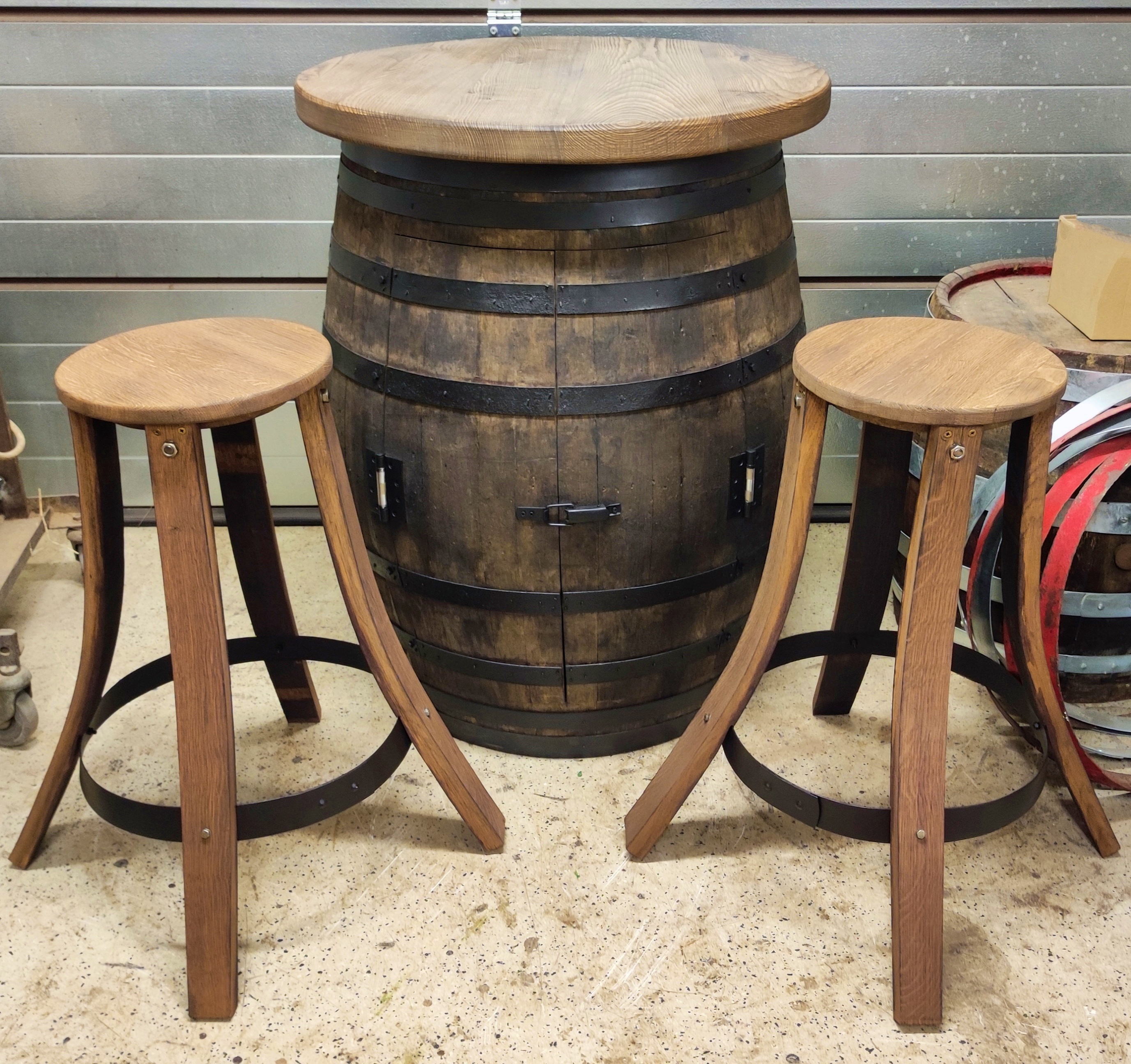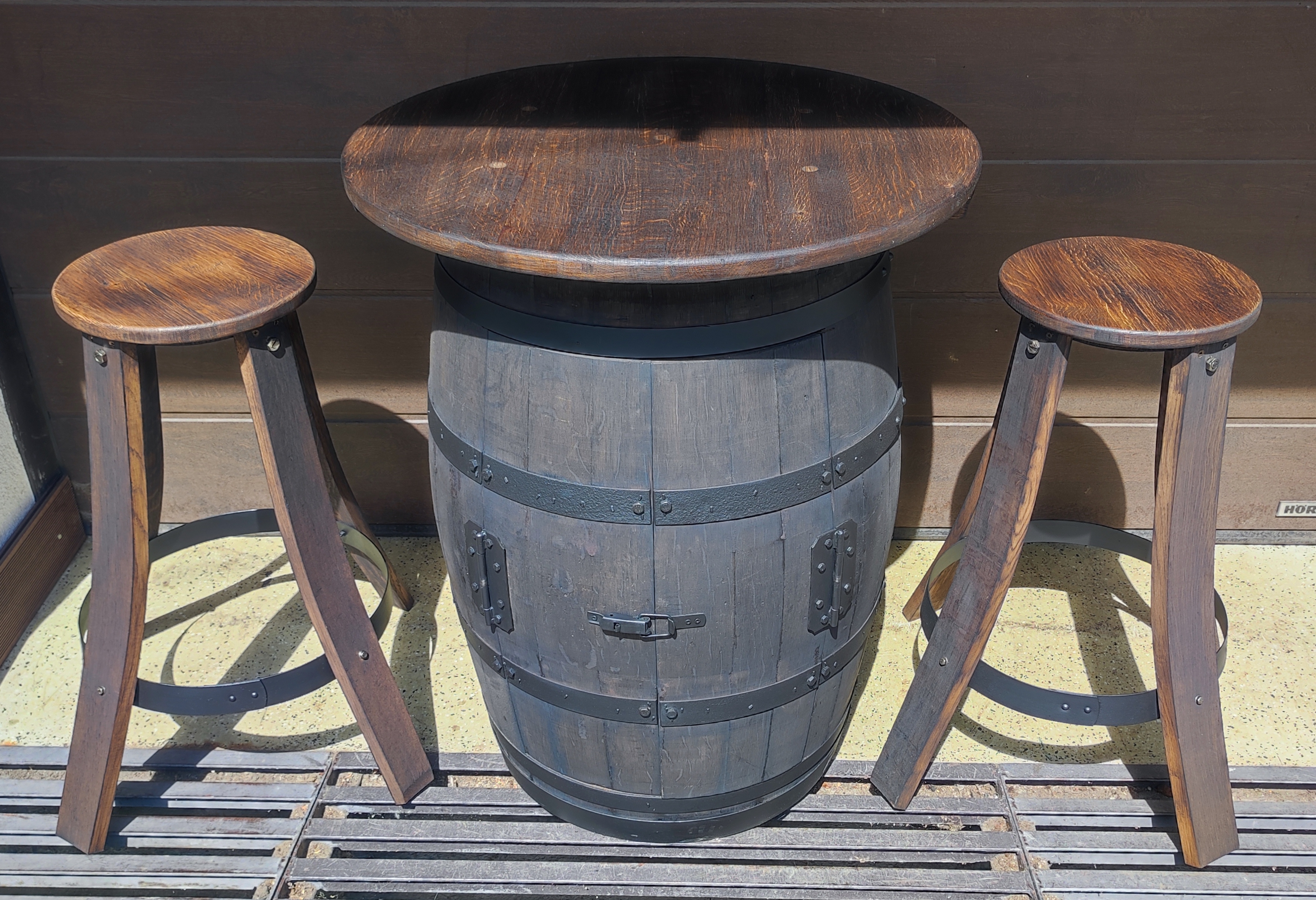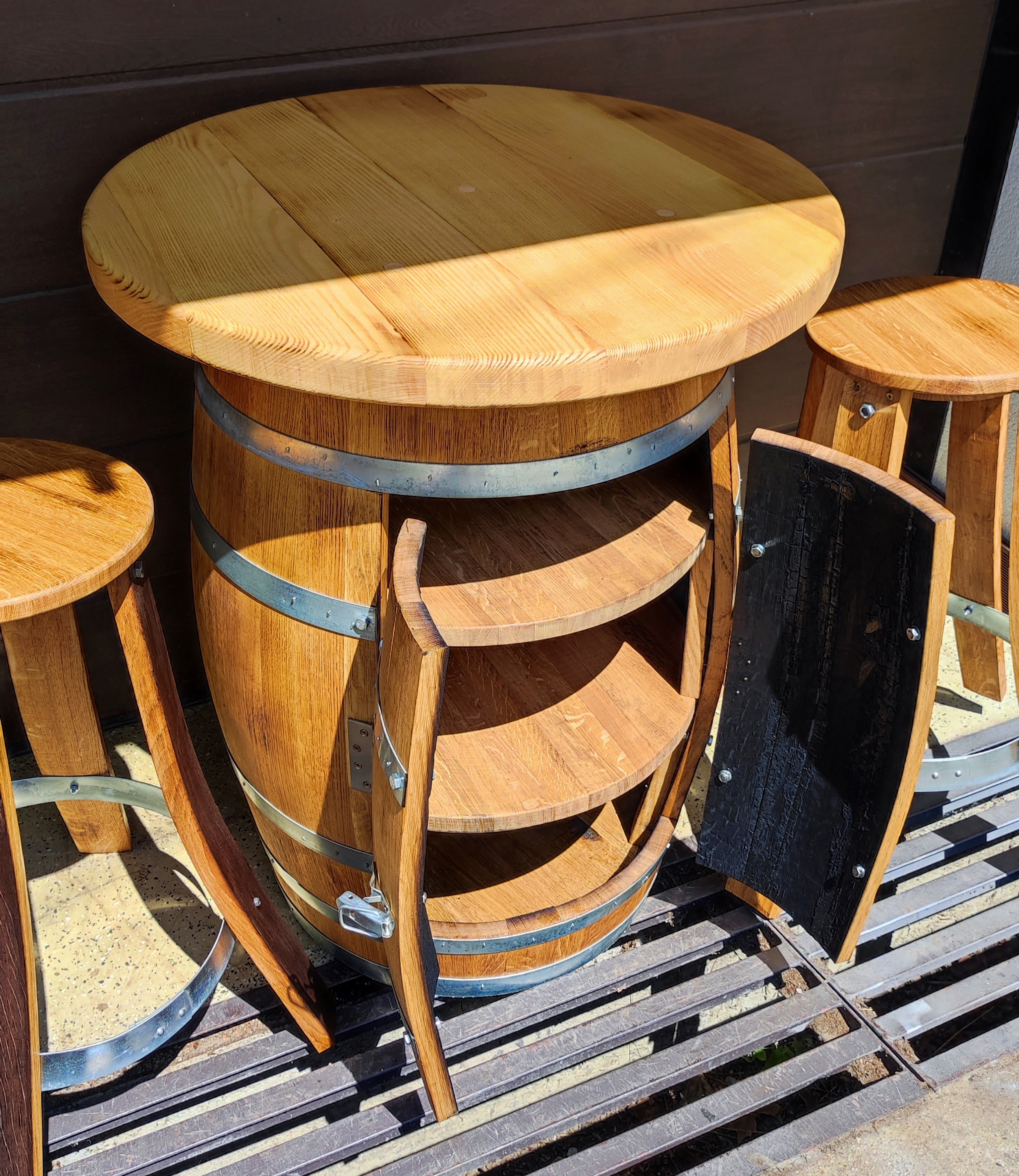 Tölgyfa hordóból készült bárszekrényeket és bárasztalokat ragasztva, rögzített abroncsokkal, használt vagy új hordóból, igény szerint csiszolva, választható kiegészítőkkel és felületkezeléssel, egyedi igény alapján készítek. Tölgyfa hordódongából készült bárszékekkel tökéletes szettet alkotnak.
