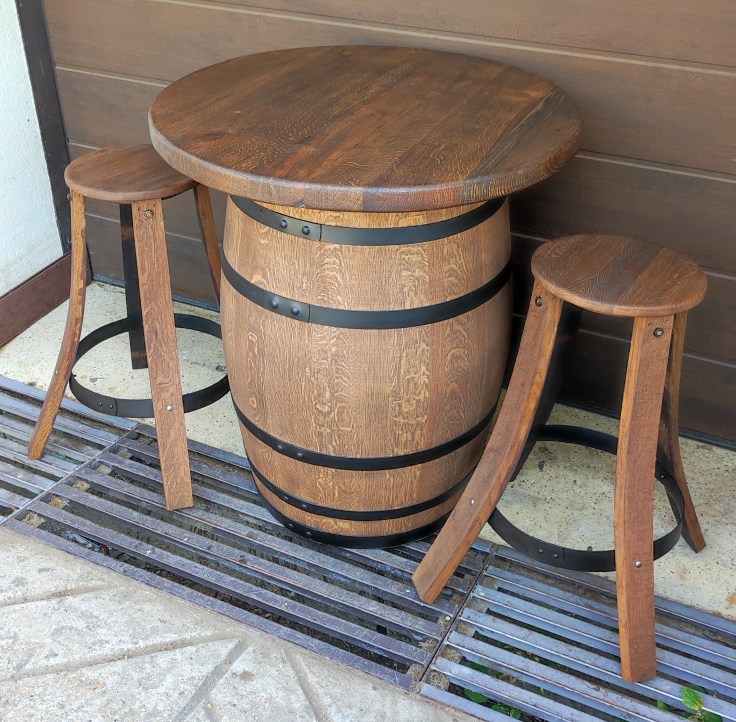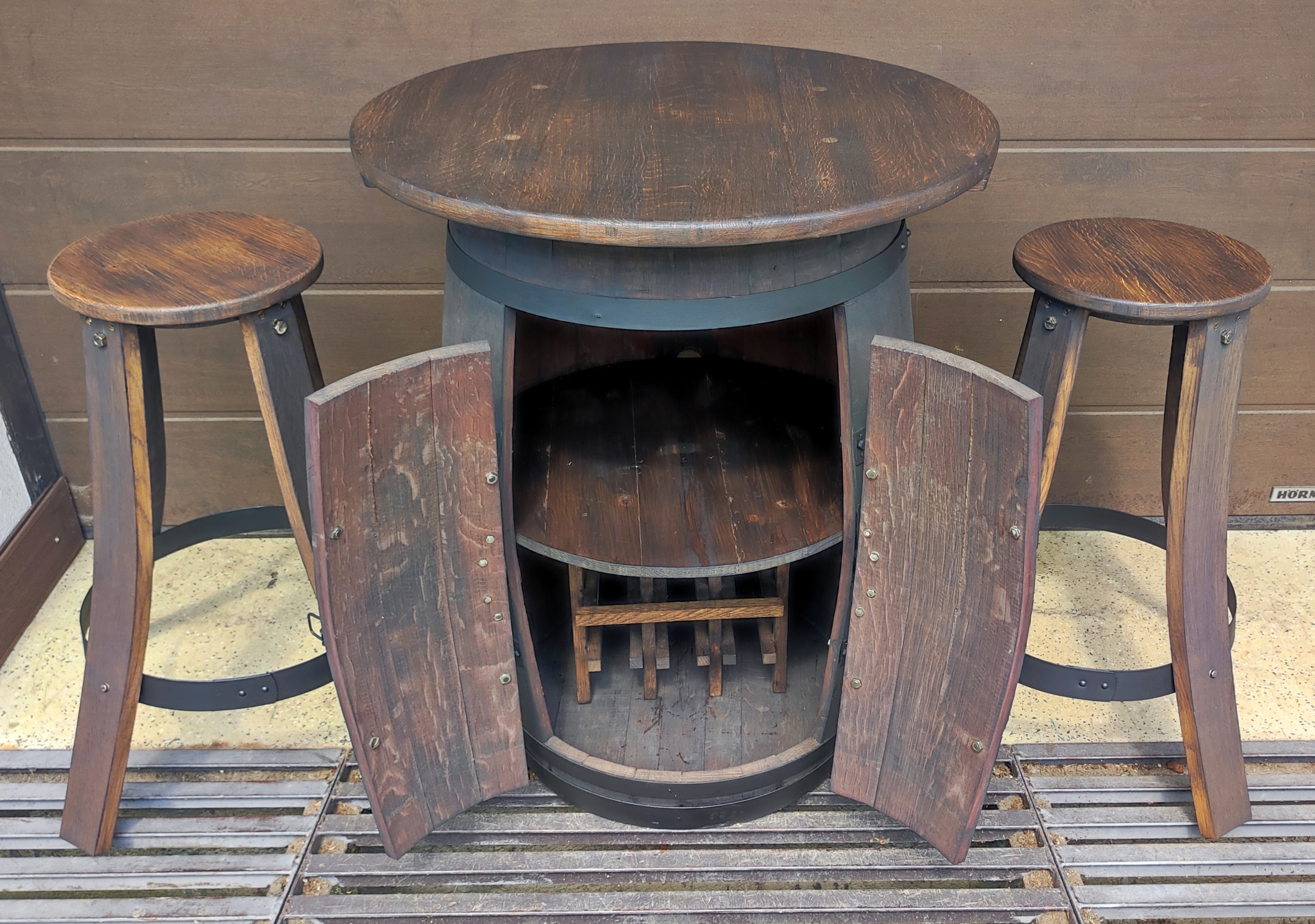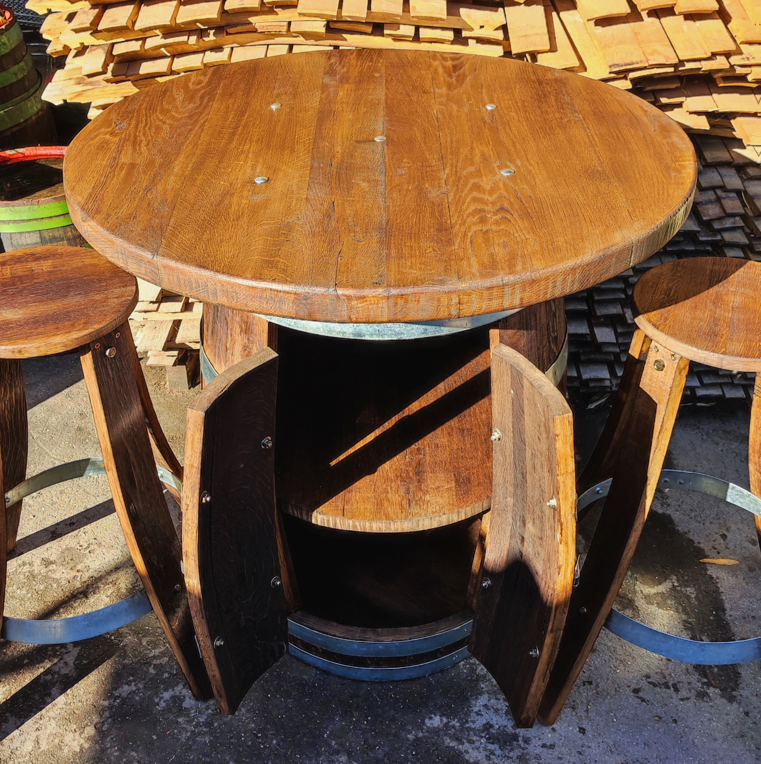 Tölgyfa hordóból készült bárszekrényeket és bárasztalokat ragasztva, rögzített abroncsokkal, használt vagy új hordóból, igény szerint csiszolva, választható kiegészítőkkel és felületkezeléssel, egyedi igény alapján készítek. Tölgyfa hordódongából készült bárszékekkel tökéletes szettet alkotnak.
