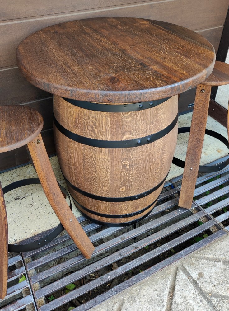 A képen látható hordó asztal teljes ára 135.000 Forint.