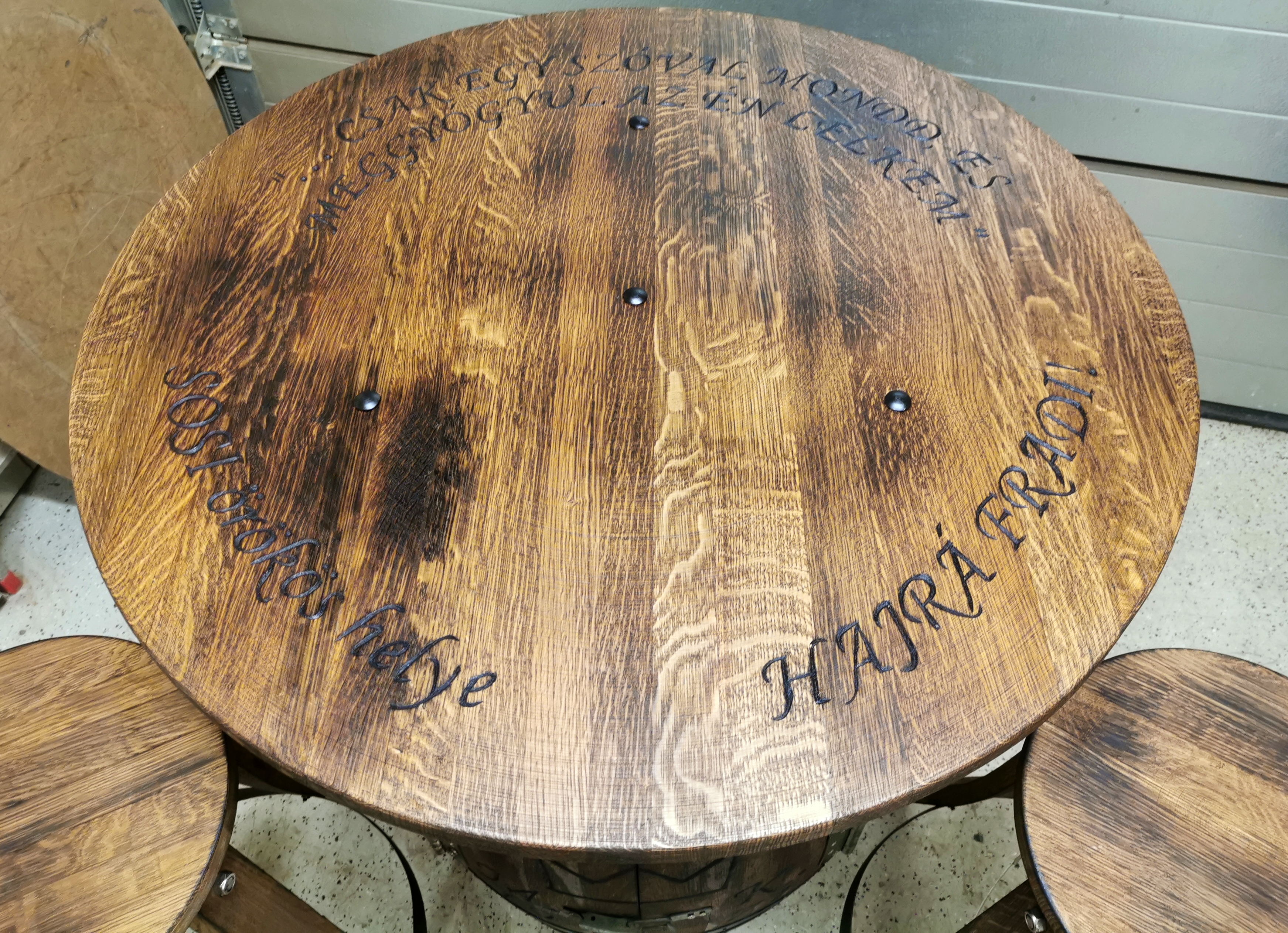 - Egyedi festés, faragás vagy lézergravírozás asztallapba, a hordó fenekébe vagy ajtajába Kérjen árajánlatot!