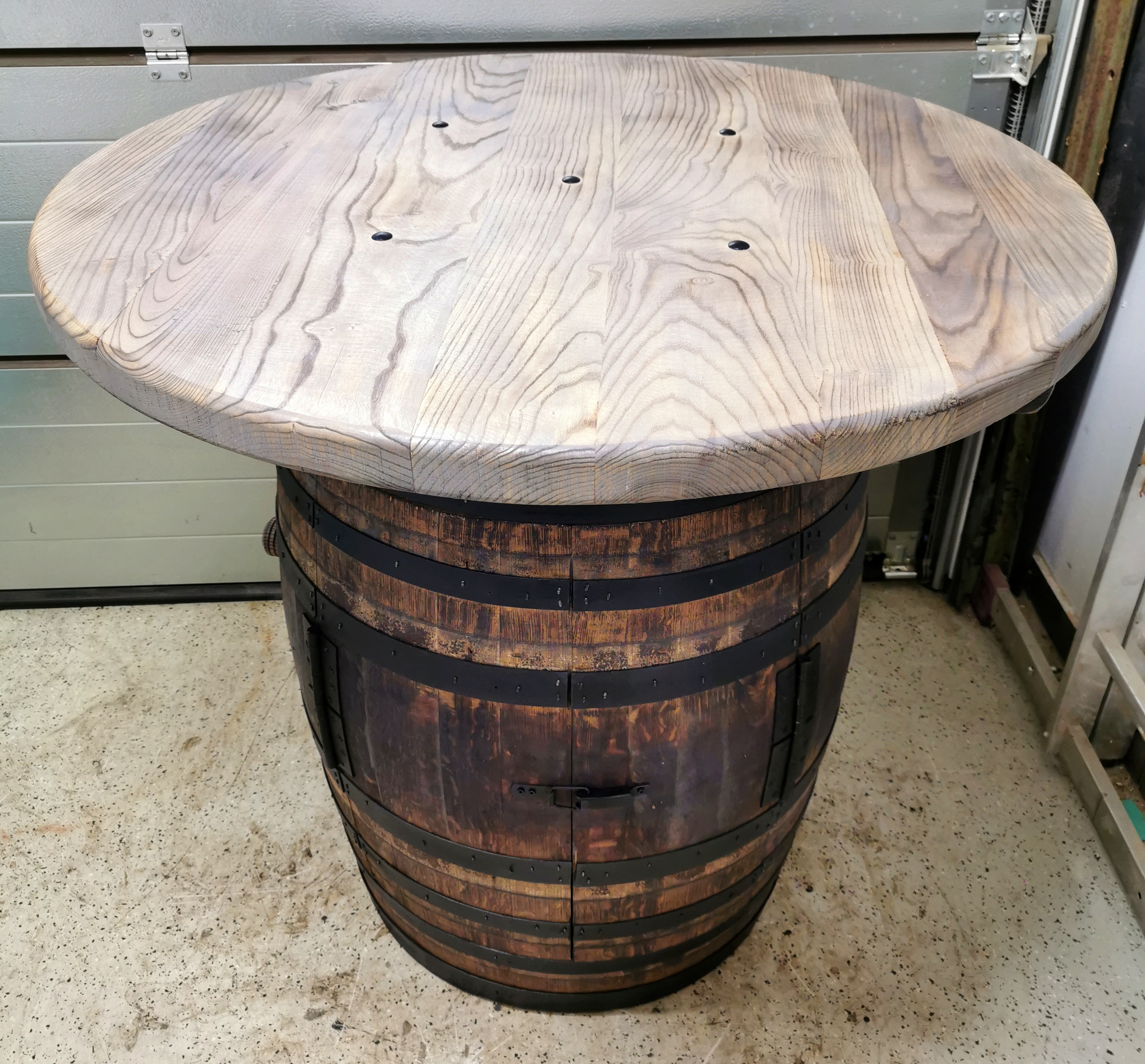 A képen látható hordó asztal teljes ára 195.000 Forint.