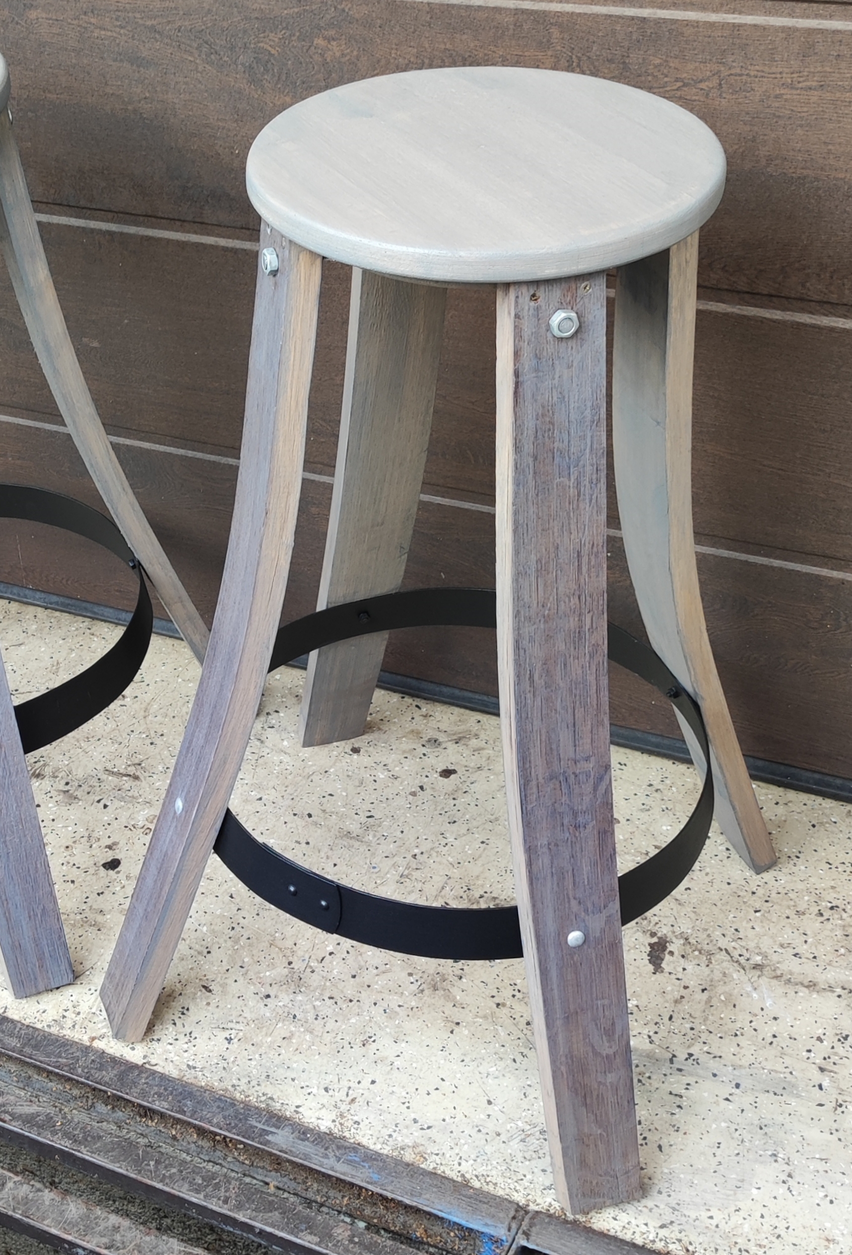 Fekete abroncsos, platánszürke lazúrral kezelt bárszékekkel