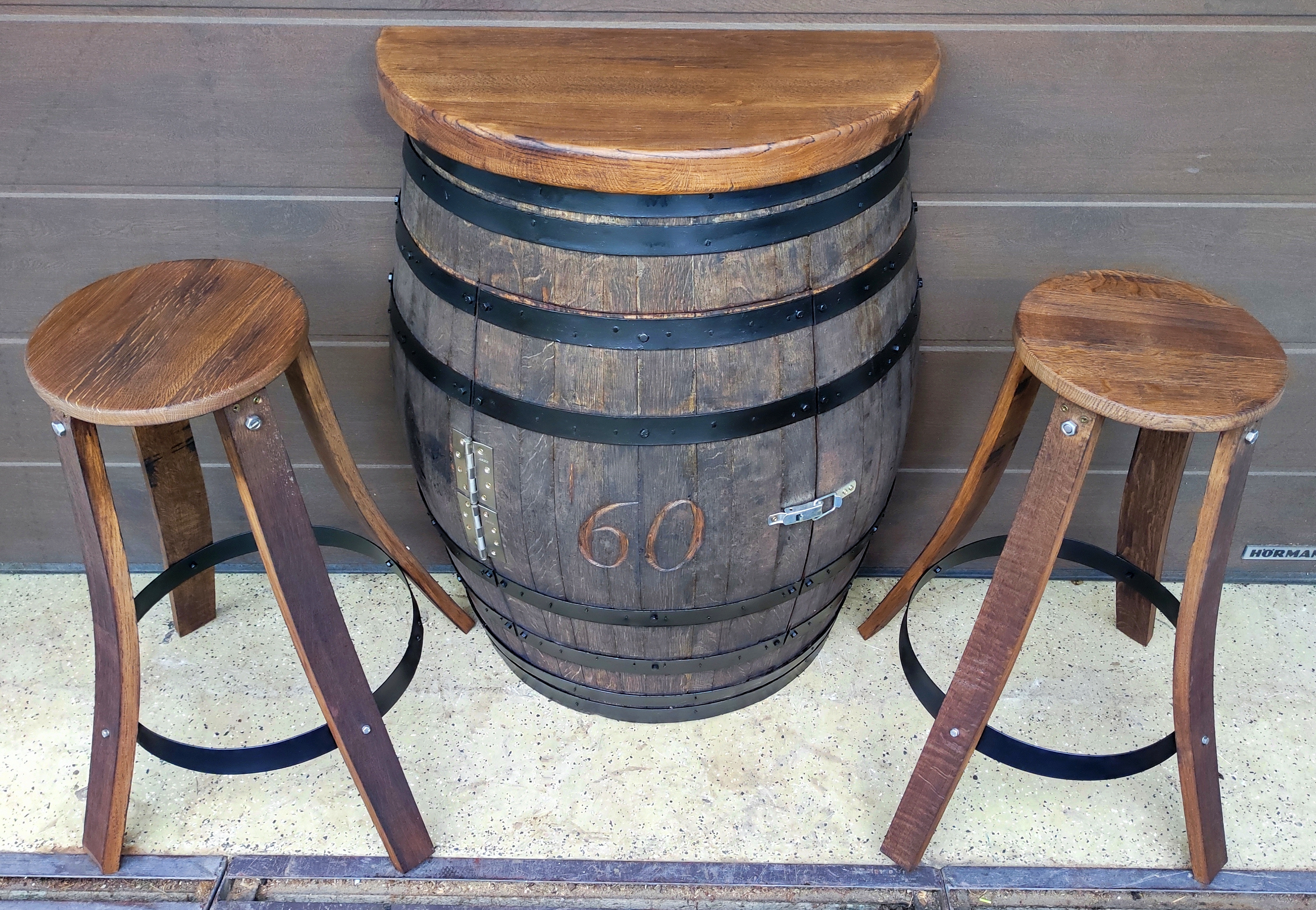 They form a perfect set with bar stools made from oak barrel staves.